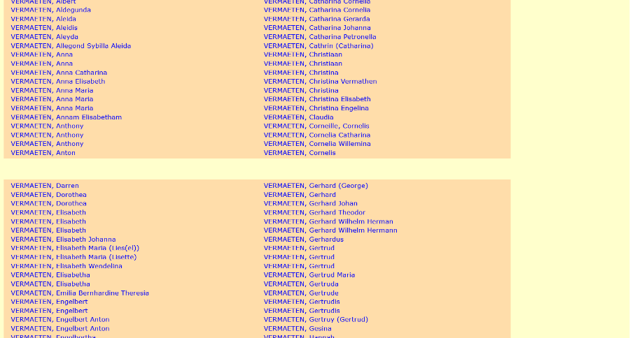 Voor mijn stamboom website www.vermaeten.nl heb ik een tekstparenteel en een grafische parenteel via een Aldfaer html gemaakt. Deze heb ik vervolgens geüplaod naar mijn Wordpress-site. Dat werkt prima. Nu wil ik een fraaie namenindex op de site plaatsen waarmee ik de parenteel kan doorzoeken, Ik heb, via 'bonusrapporten' - 'overzichten'- 'indexmaker', verschillende instellingen van de linkmogelijkheden geprobeerd. Ik krijg wel de namenlijst op mijn website maar als ik een naam aanklik ontstaat er geen verbinding met de parenteel. In de adresbalk staat dan bijvoorbeeld: vermaeten.nl/aldfaer/allenamenindexmetbron/index.html#677 Maar er komt geen vervolg.