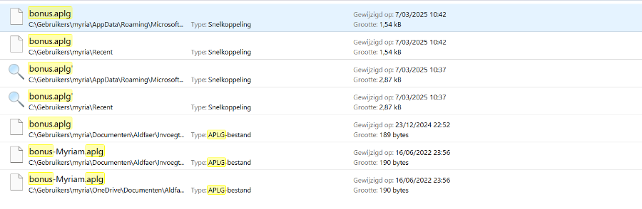 Als ik een zoekopdracht doe met bonus APLG dan krijg ik volgende resultaten. (zie image)
