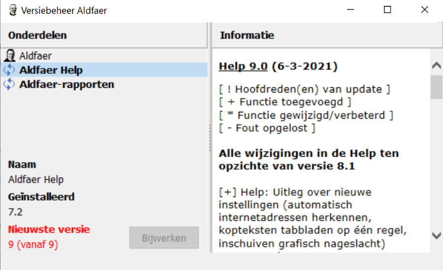 Aldfaer Help en Rapporten update naar versie 8.1