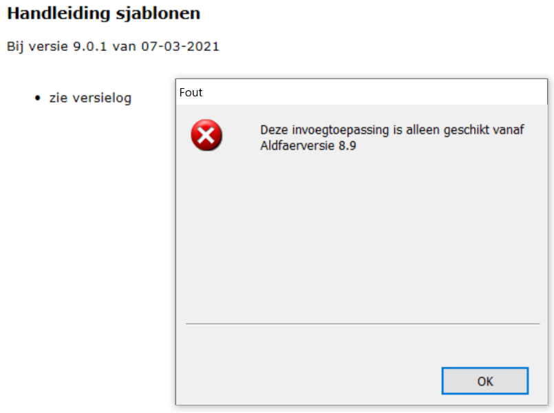 Het is op dit moment niet mogelijk om de Aldfaer help en rapporten te updaten van versie 7 naar 8.1, alleen naar versie 9.