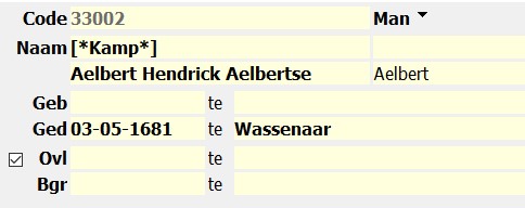 De geheime tekst neem ik verder op via Onderhoud met als achternaam "Sorteer als' = Kamp waardoor de Personenlijst altijd op familienaam - voornamen - geboortedatum gesorteerd kan worden.
