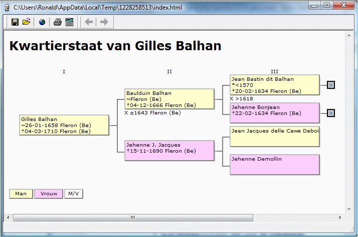 ― JayCee schreef Klikken op het blauwe icoontje (3de knop vanaf links) Dit knopje ontbreekt in mijn menu. ― Ik heb de instelling "IE11-modus (standaad DOCTYPE)" gewijzigd in "IE11-modus (elk DOCTYPE)"― een rapport activeren via “Tonen enz.” werkt niet― instelling standaard grafische rapporten is C:\Aldfaer\Aldfaer-sjablonen\Grafische rapporten\Kwartierstaat (Grafisch).asjHet niet werken van een grafisch rapport is exemplarisch bedoeld. ― Er werkt geen enkel rapport. ― Zo werkt bijv. ook onder “Help – Documentatie” nietMaar de rapporten worden wel gemaakt. Als ik zo’n rapport op de locatie “Rapport uitvoer" opzoek en activeer, dan opent dat rapport in mijn google browser. Dus niet in de standaard Aldfaer browser.