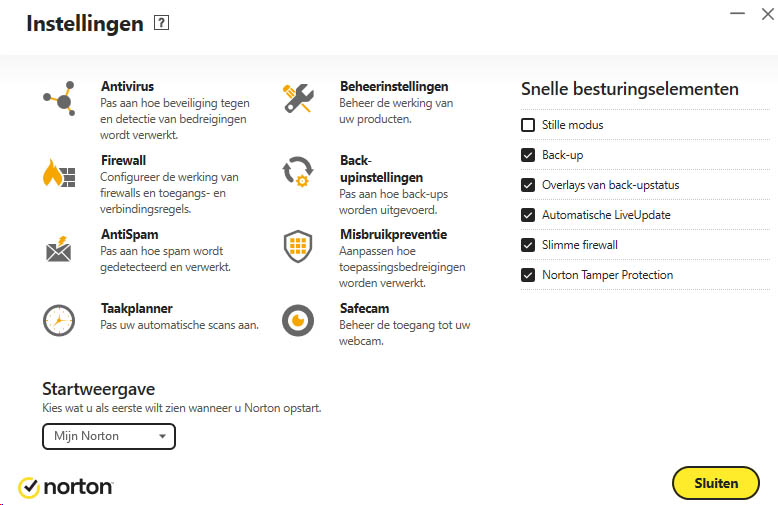Ik zit in mijn Norton te zoeken, instellingen kan ik vinden, maar verder niet.