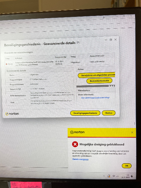 Om toch behulpzaam trachten te zijn heb ik even gekeken in de instellingen van Norton waar Aldfaer als vertrouwd programma wordt vermeld.