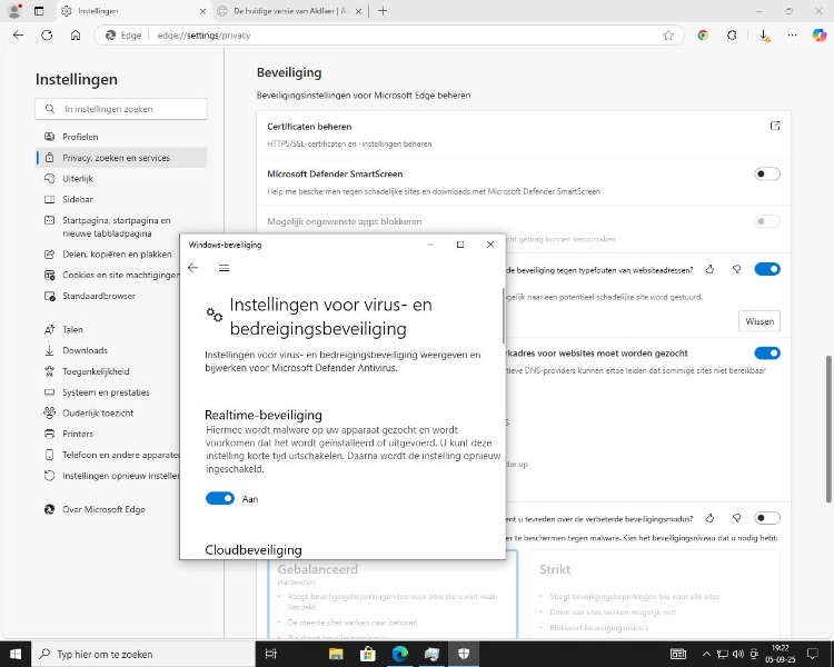 instellingen.jpg: windows defender blijft aan staan als het vinkje in edge uit staat.