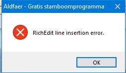 bij opstarten Aldfaer RichEdit line insertion error, mijn stambbom wordt weldegelijk geopend op de laatst bewerkte persoonskaart.