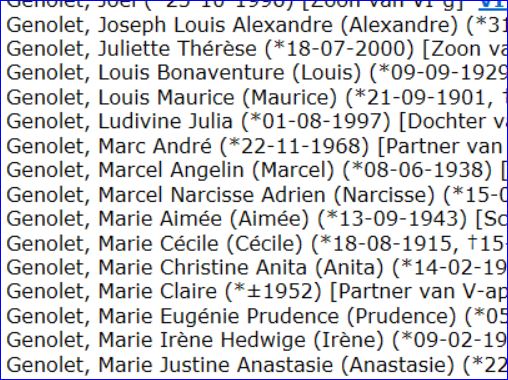 Als je dan een parenteel met index maakt staan de namen niet op alfabetische volgorde.