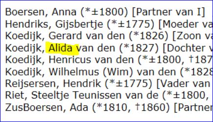 De gele Alida = alleen roepnaam staat dus niet gesorteerd.
