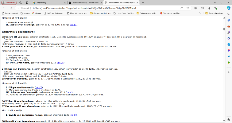Wanneer ik een uitdraai maak van een kwartierstaat komen meerdere personen terug onder opeenvolgende generaties (zie bijgaand voorbeeld).