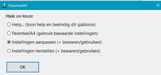 Als u op het beginvenster staat dan kiest u voor '' Instellingen aanpassen" waarna op een vervolgscherm de Roepnaam gekozen kan worden.