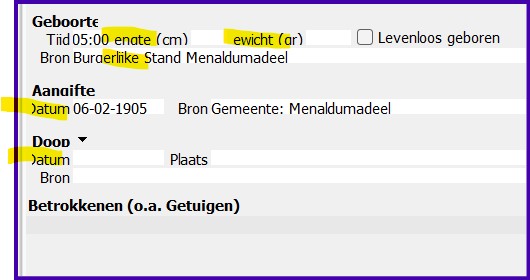 De velden om de naam en bijbehorende data in te vullen zijn ineens te klein (hoogte) om de gegevens compleet te zien.