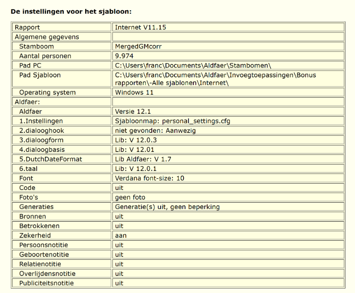In de Aldfaer-instellingen > Rapporten > tekst moet u een vink plaatsen bij Materiaal.