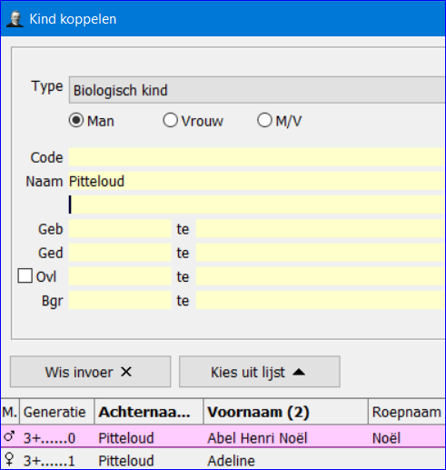 Ik begrijp je laatste zin niet van je bericht. Op de personenlijst vind ik ik geen "Kies uit lijst". Als ik een persoon aanklik met de rechter muisknop, dan krijg ik: Selecteer alle personen, geselecteerde personen toevoegen aan nieuwe groep, geselecteerde personen toevoegen aan bestaande groep, overzicht van geselecteerde personen, geselecteerde personen verwijderen uit stamboom.