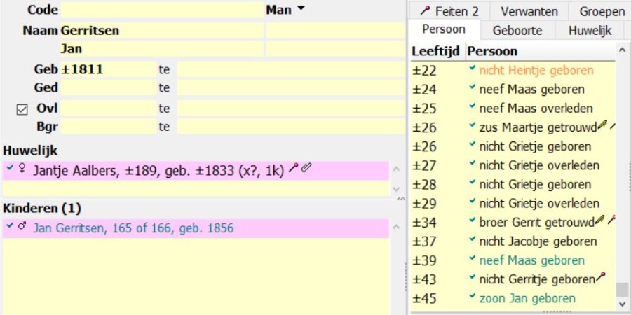 Vanaf het moment dat het vink Ovl actief gezet zonder datum van overlijden dan worden geen Gebeurtenissen in het Leeftijdsoverzicht geplaatst.
