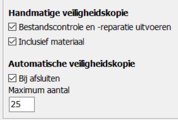 instelingen-> veiligheidscopieen zet ik op 7 stuks bij afsluiten deze staan op de C schijf. Deze worden wel als backup (windows 11) in de cloud bewaard.