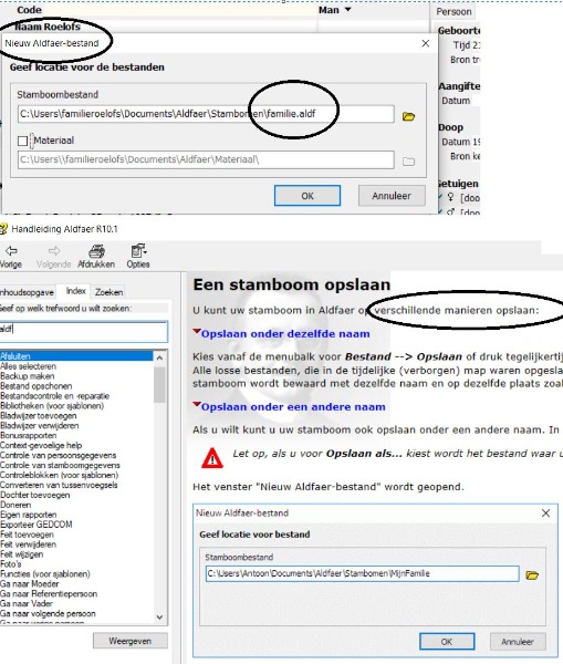 Bij de aldf versie methode hoef ik alleen maar de gewenste aldf-bestand op te zoeken en via opslaan als pas ik dan alleen nog de datum/tijd in de naam van het bestand aan en dan is het al gereed. Daar hoef ik niet eens voor naar de handleiding van Aldfaer.