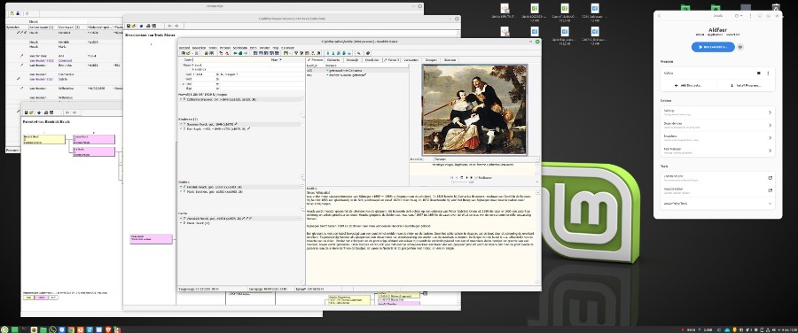 Zelf werk ik nu middels een pCloud connectie voor de gegevens vrijwel geheel in Bottles en via een Aldfaer-installatiefolder kopie wissel ik uit met mijn W11 laptop. Handig voor meenemen. De Linux draait op een PC met een 3440x1440 (21:9) scherm (70x33,5 cm)