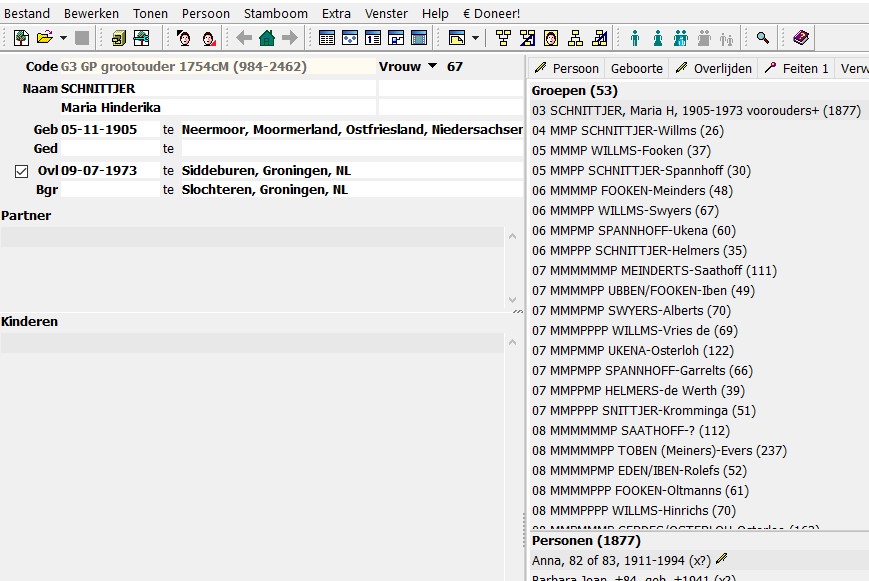 Ik heb van elke voorouderpaar een groep aangemaakt met nakomelingen, ik vind dat enorm handig om van nazaten in een oogopslag te zien tot welke groepen zij behoren.