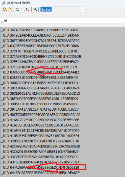 De notities bevatten door een import van mij (al jaren geleden) heel veel regels die bestaan uit _UID met daarachter veel vervolgcijfersletters (globalid?) Dat is geen gezicht dus ik ben ze aan het opruimen.