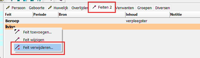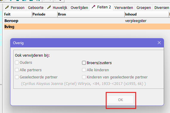 Het plaatje laat vermoeden dat bij een broer/zuster het feit aanwezig is > aanvinken > OK