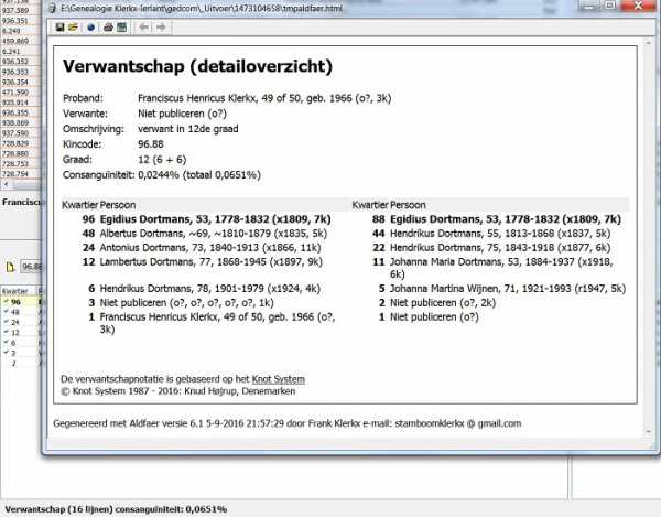 In dit deel is tevens in de onderste regel het gezamelijk totaal te zien 0,651 % verwant aan elkaar.