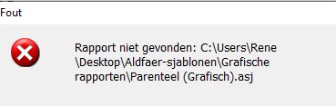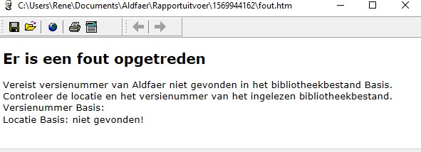 Alle bestanden zijn perfect overgegaan, maar als ik een Aldfaer-rapport genereer (gelijk welk) krijg ik error (bijlage).