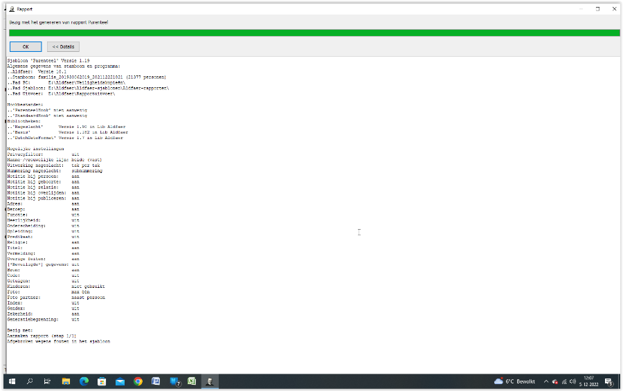 Foutmelding bij Aldfaer Rapport Parenteel