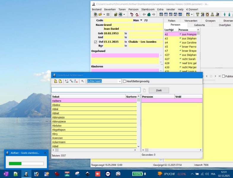 Ik heb Aldfaer open staan, edoch het venster onderhoud 'Onderhoud Achternaam' heb ik niet.